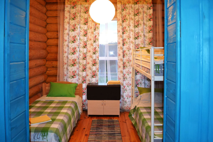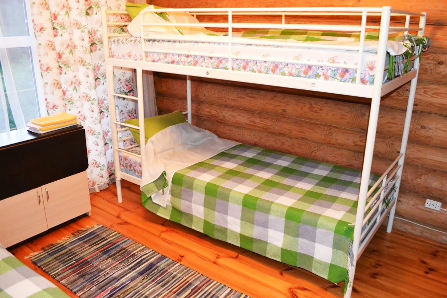 Комната "Слонята" - с односпальной и двухъярусной кроватями. Отличный бюджетный вариант для 3 гостей. Удобства за дверью, - общий санузел с номером 104