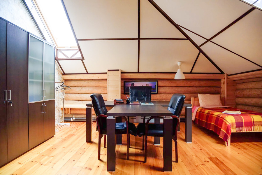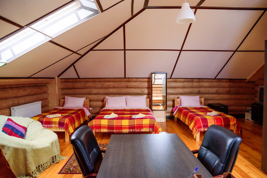"Пятиместный Люкс" - большой номер, 5 односпальных кроватей, большой письменный стол, большой телевизор, свой санузел